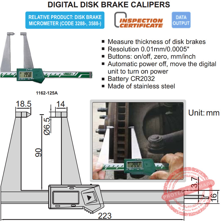 Kelengkapan INSIZE 1162 Digital Disk Brake Caliper :