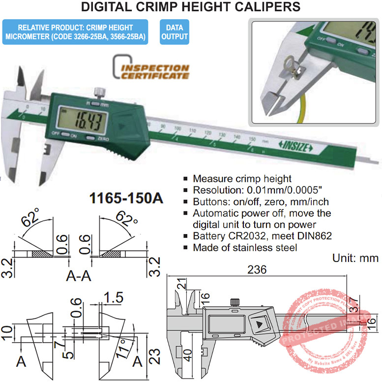 Kelengkapan INSIZE 1165 Digital Crimp Height Caliper: