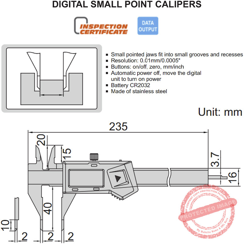 Kelengkapan INSIZE 1169 Digital Caliper with Pointed Jaw: