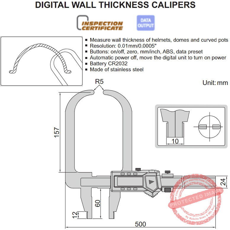 Kelengkapan INSIZE 1536 Digital Wall Thickness Caliper: