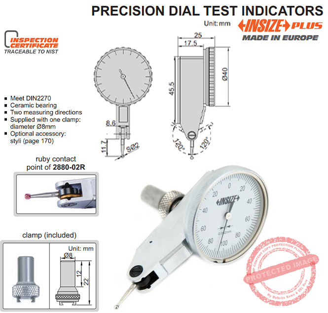 Alat ukur INSIZE Precision Dial Test Indicator, 0.2mm, 2880-02 ini menawarkan solusi presisi untuk sistem pengukuran lever mekanis dengan tampilan gauge bertipe jarum sesuai standar Jerman DIN 2270. Lever test gage buatan jerman ini bisa membantu anda menguji silindrisitas, untuk menguji bagian untuk runout dan distorsi permukaan, menentukan titik tengah dari material maupun dari tool holder pada mesin milling, bubut maupun pada machining center dan bench center. Cukup setting jarum ke Nol, sehingga Anda dapat memeriksa titik tengah material yang tepat.