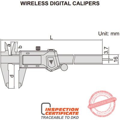 INSIZE 1113 Wireless Digital Caliper (DIN 862) Range; 150mm – 300mm