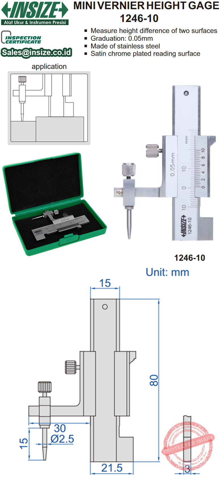 Fitur INSIZE 1246-10 Mini Height Gauge (Vernier):