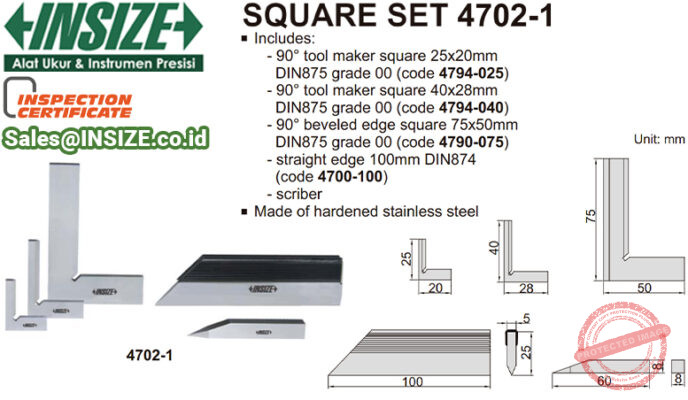Fitur INSIZE Square Angle Edge 90° Box Set 4702-1: