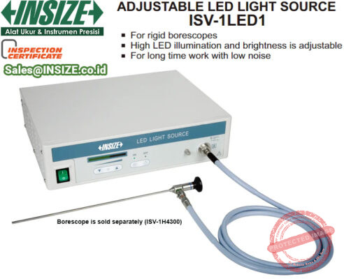 INSIZE Adjustable Light Source ISV-1LED1 merupakan solusi penerangan untuk pengecekan lubang internal pada borescope fiber yang rigid. Borescope kaku terdiri dari unit optik non-fleksibel dari baja tahan karat yang dipoles yang dipasang pada lensa mata dan INSIZE Adjustable Light Source ISV-1LED1 digunakan sebagai pemancar cahaya yang terpusat.