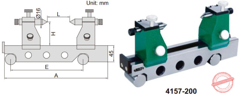Terbuat dari material base Cast iron dan tool steel, mata ukur anvil yang keras dan presisi untuk ukur benda kerja berupa shaft/rod dan alat ukur lain dengan panjang max 200mm dan diameter max 120mm.
